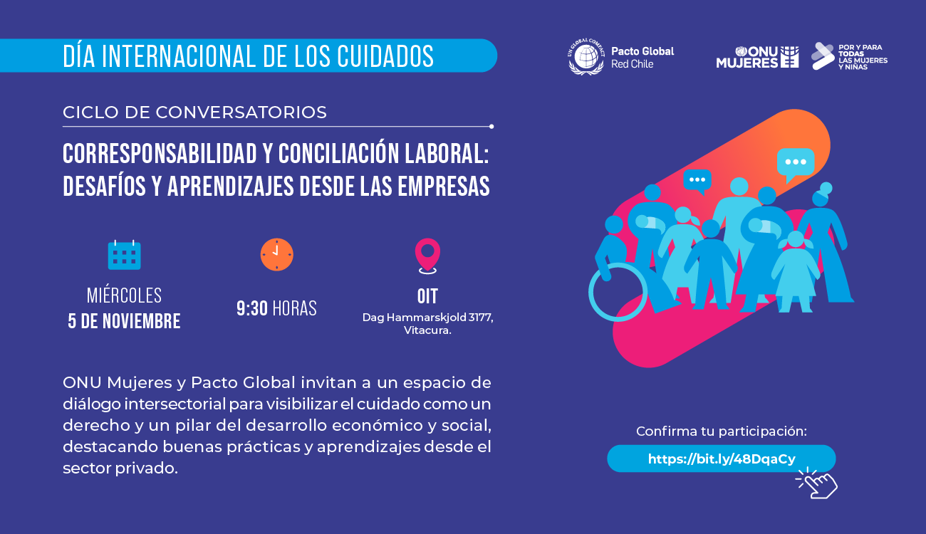 ONU Mujeres y Pacto Global invitan a un espacio de diálogo intersectorial para visibilizar el cuidado como un derecho y un pilar del desarrollo económico y social, destacando buenas prácticas y aprendizajes desde el sector empresarial.