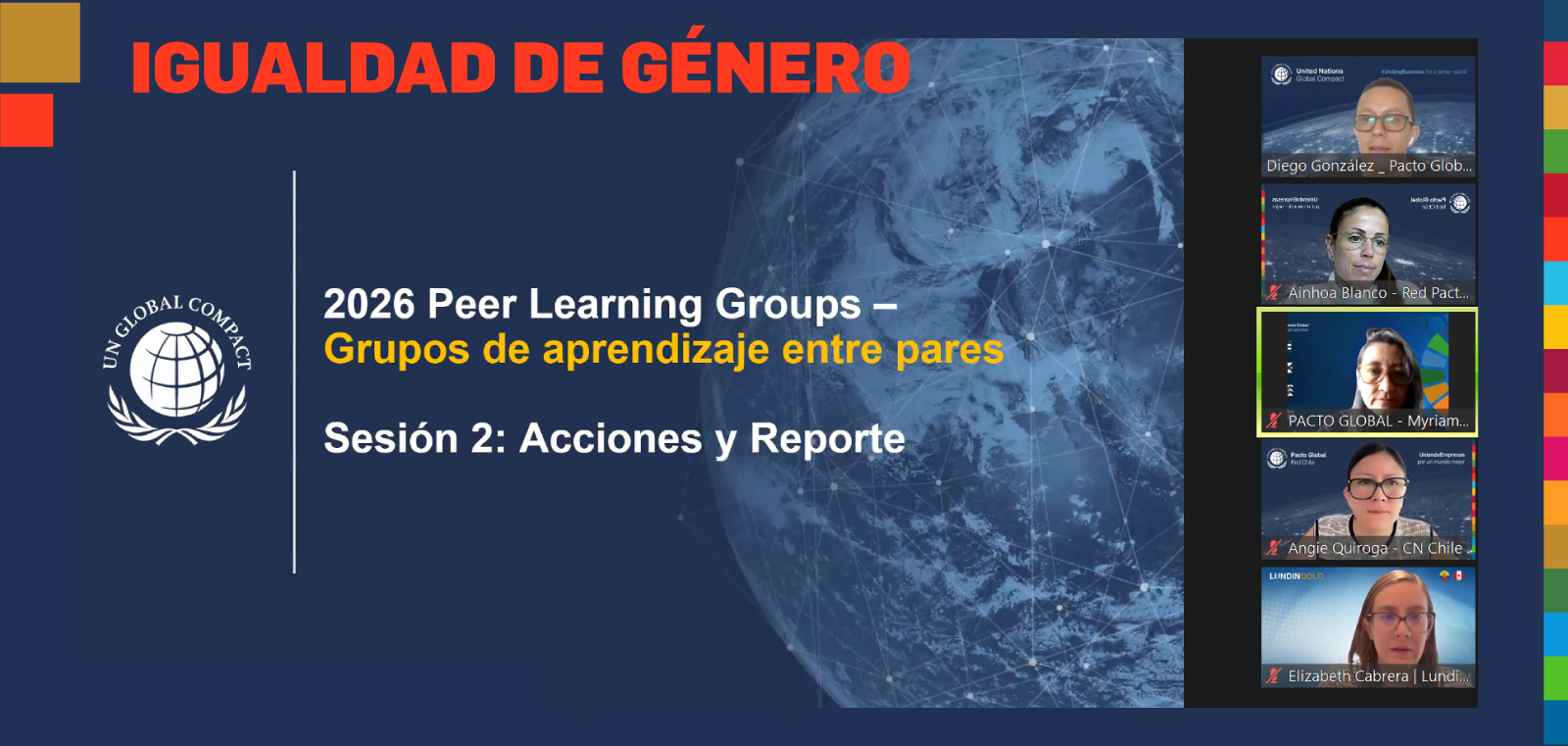 - Con el objetivo de acelerar el impacto del sector privado en las metas del ODS 5, se finalizó con éxito la edición 2026 del Peer Learning Group (PLG) sobre Equidad de Género.